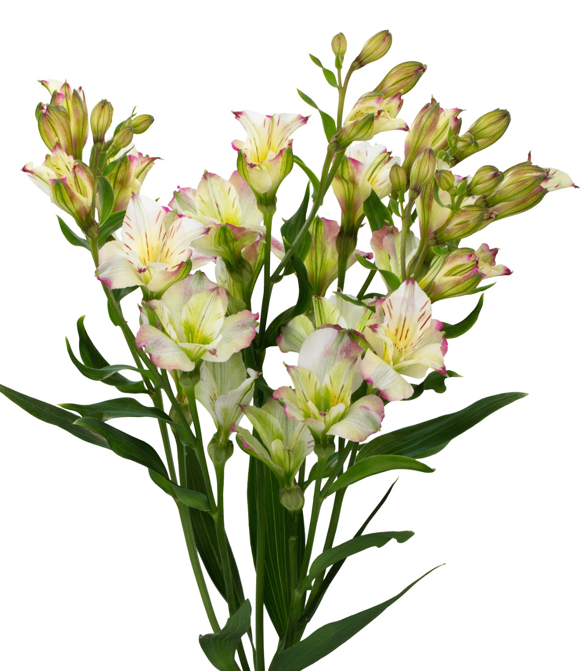 Standards The other 11 varieties wold be considered standard types as they have the habit and shape we associate with Alstroemeria. In contrast to traditional Alstro many of these are lacking the stripes in the throat of the flower giving them a cleaner more versatile appearance. We have also chose the softest pastel and wedding colors as we feel the market is ready to accept these subtle beauties. They generally have larger flowers than what we currently know of Alstro.