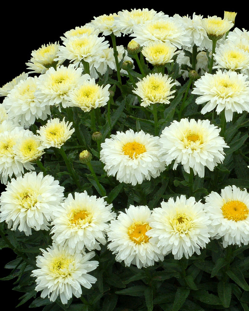 Bailey's Notes | When you think of Shasta daises you likely picture the old timey flowers growing in your grandmothers garden. We are proud to offer some new and exciting cultivars through Terra Nova that feature interesting textures and creamy colors. All of these cultivars are propagated via tissue culture and are patented and can not be legally propagated at home. |