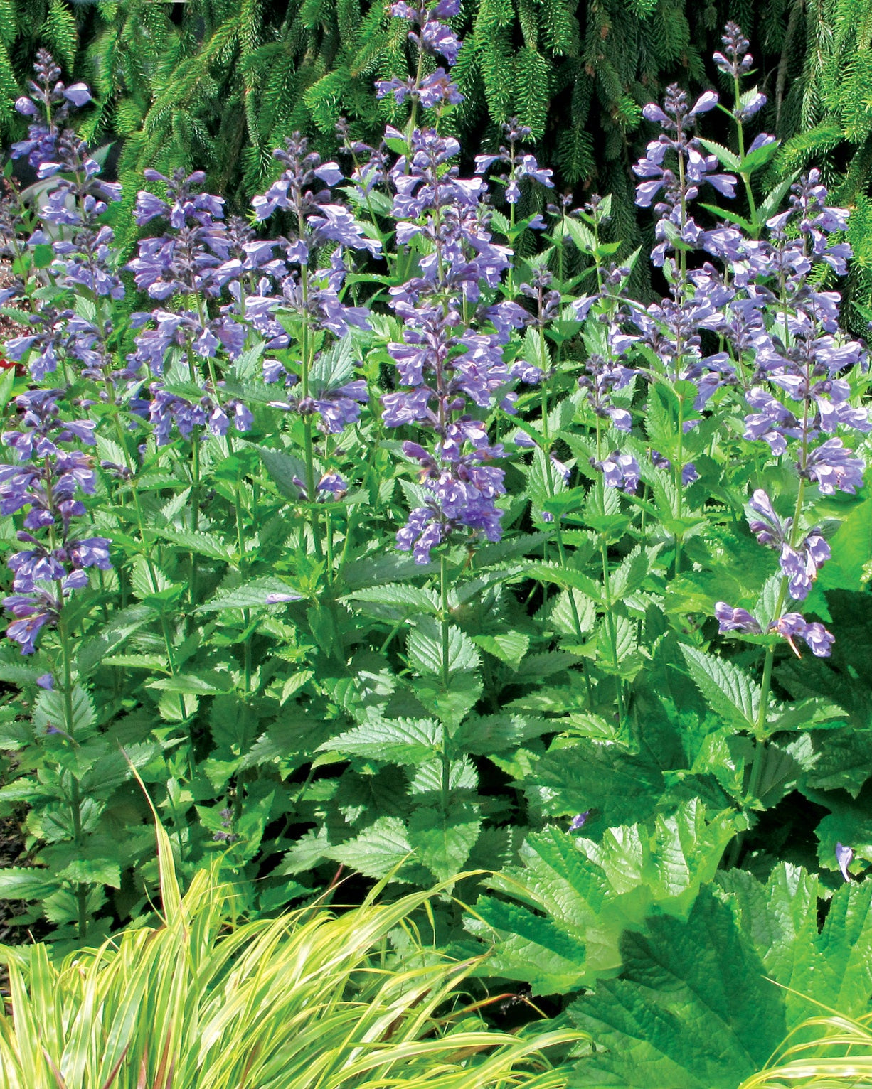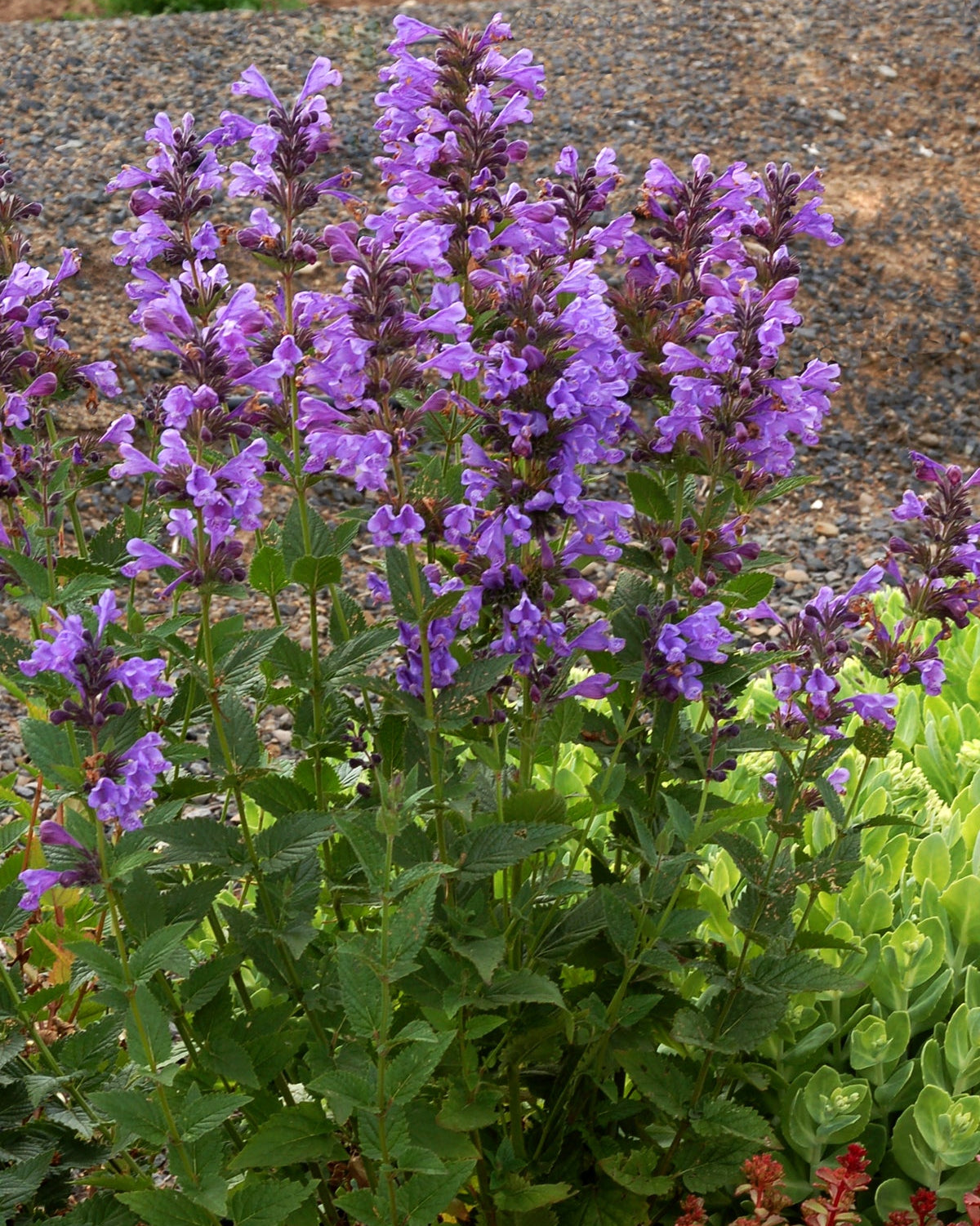 Our selection of this catmint has huge blue flowers, which upon close inspection, do look like blue dragon heads! Compared to the species, 'Blue Dragon' is upright and compact (rather than floppy) with larger, showier flowers. Excellent in a sunny border or large container.