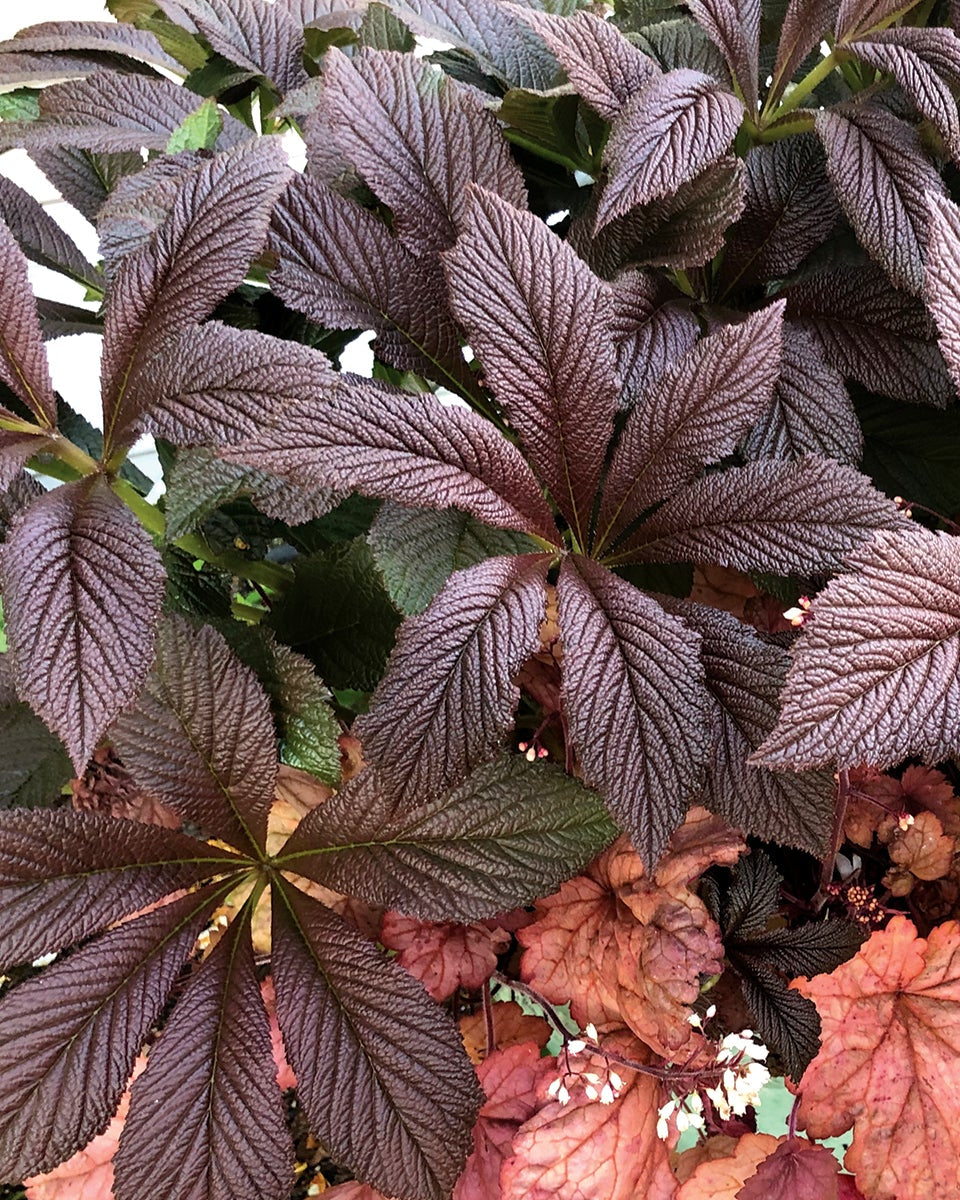 Bailey's Notes | Rodgersia ‘Bronze Peacock’ is a dramatic foliage plant whose bold leaves add a lot of interest to shady or woodland gardens. We wanted to add it to our lineup as it's a horticulturally charismatic plant for the garden, and with some trial and error, it could make a great cut flower/foliage as well. |