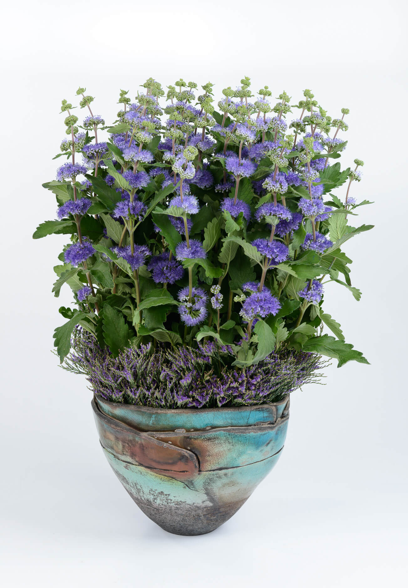 We trialed this Caryopteris on our farm in 2018, and fell in love. We planted, gave them a pinch, and stood back. They are a short day flower, blooming around the same time as Salvia leucantha and early chrysanthemums, when a fresh crop is most appreciated. They are very long lasting as well.