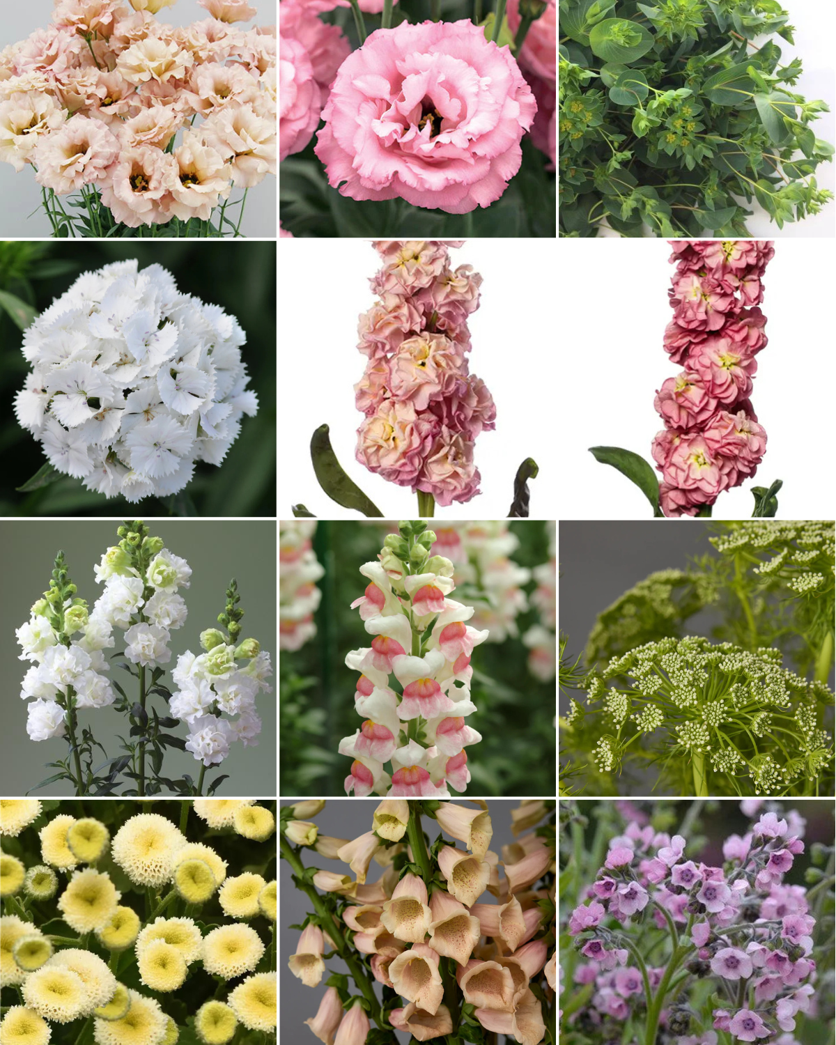 This traditional green-and-white palette was curated for wedding designers, offering fillers and focal flowers that will bring any couple's vision to life.