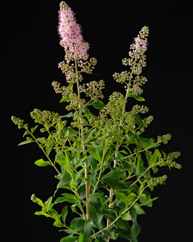 This is an interesting and unique new cultivar of spiraea introduced by our friends at Kolster. Strong, straight stems are loaded in clusters of spherical green/pink buds. Cut when the buds at the end of the branch have opened to show the cheery shade of light pink but the rest of the buds remain closed. These stems add a very light, airy and fluffy texture to early summer arrangements. This is a new introduction for the US markets, so by growing these you are really setting yourself apart from other growers – your florists and customers will appreciate the unique new product. The plants themselves only get about 3-4 feet tall and wide and are tolerant of most growing conditions making them very manageable in the field.