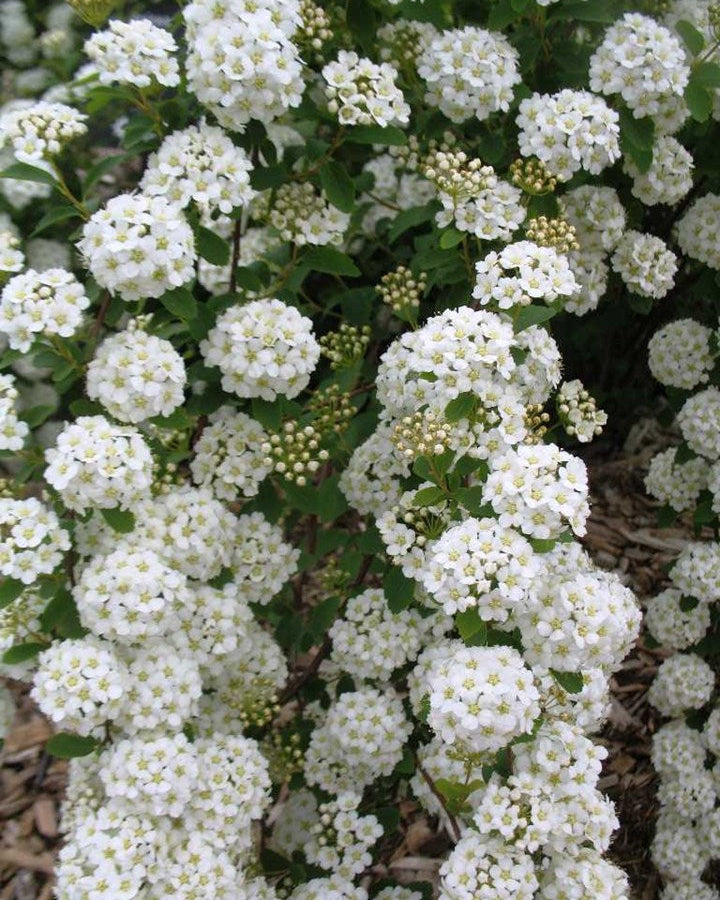 This is a slightly more modern cultivar of the Bridal Wreath spiraea – it looks almost the same and has an extremely similar growth habit to the traditional x Vanhouttei cultivar but is noted to be even more disease tolerant. The cascading branches are absolutely smothered in pure white flowers come mid-spring. This cultivar is a little smaller, at approximately 6 feet in height and width. As with all Bridal Wreath Spiraea, you can prune the shrub back right after flowering, and new growth will develop shortly after for flowers the next season. These are extremely hardy, easy-going shrubs that will reward you with armloads of cut stems.
